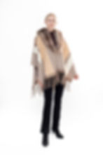 BELLE FARE - Wool wrap with fringes and faux fox fur collar in ivory